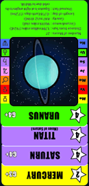 Contents: 20 planet cards, 9 moon cards, 3 dwarf planet cards, 8 return to earth cards, 16 special cards, dice & rules sheet.